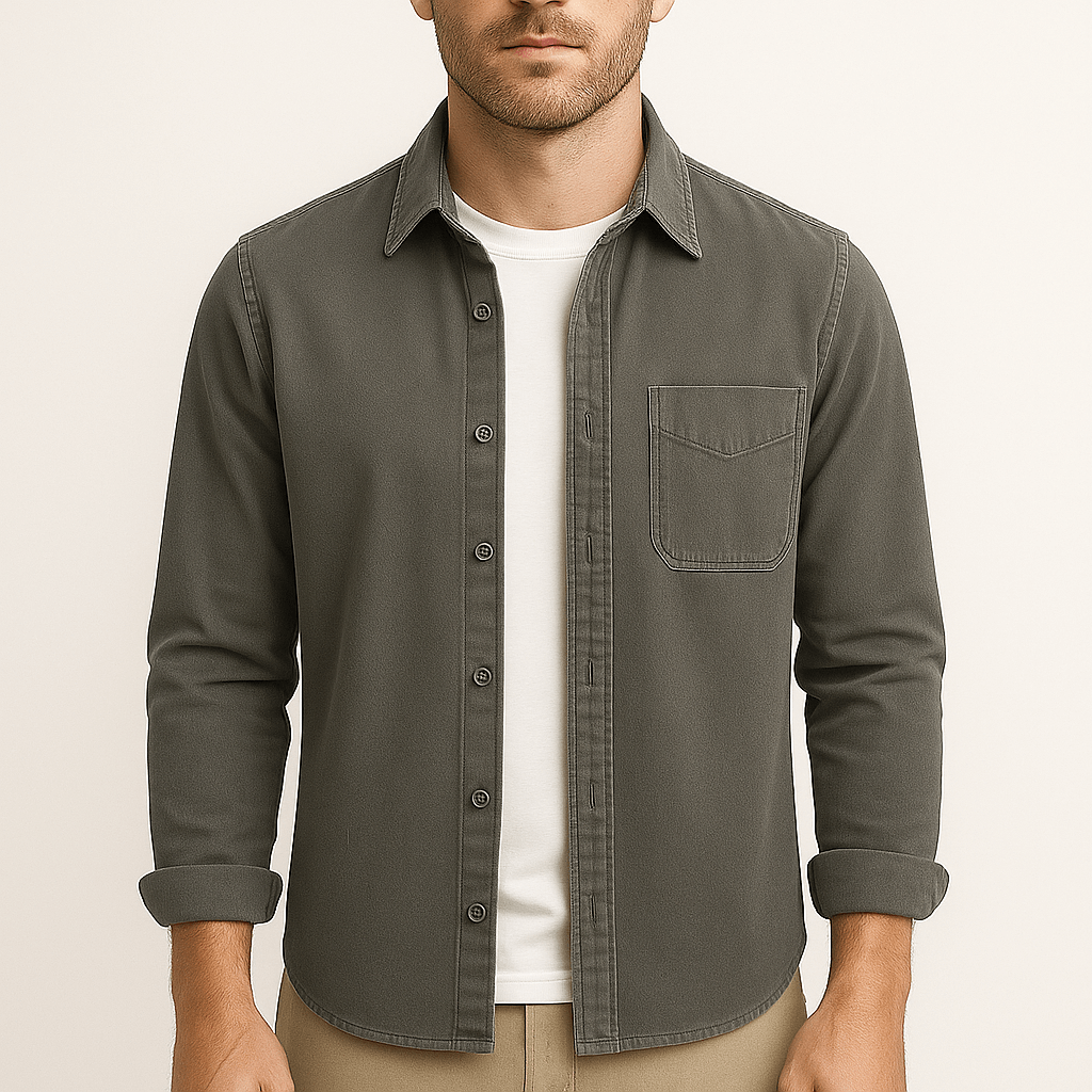 Giviny’s Corduroy Button Shirt brings soft depth and warmth to everyday looks. With its tailored cut and fine wale texture, it’s the perfect layer for crisp days and smart casual edits.