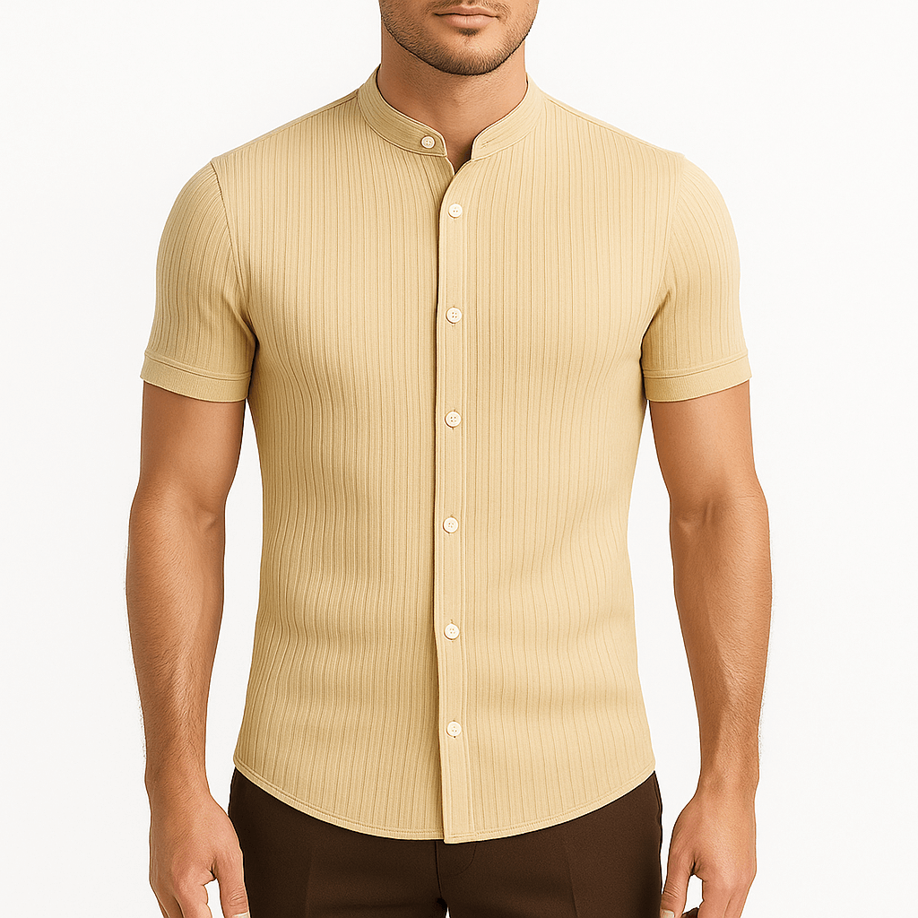 This stretch cotton shirt delivers a clean, sculpted silhouette with lightweight structure and flexible comfort. Designed to move with you throughout the day, it blends everyday polish with tailored athletic ease.