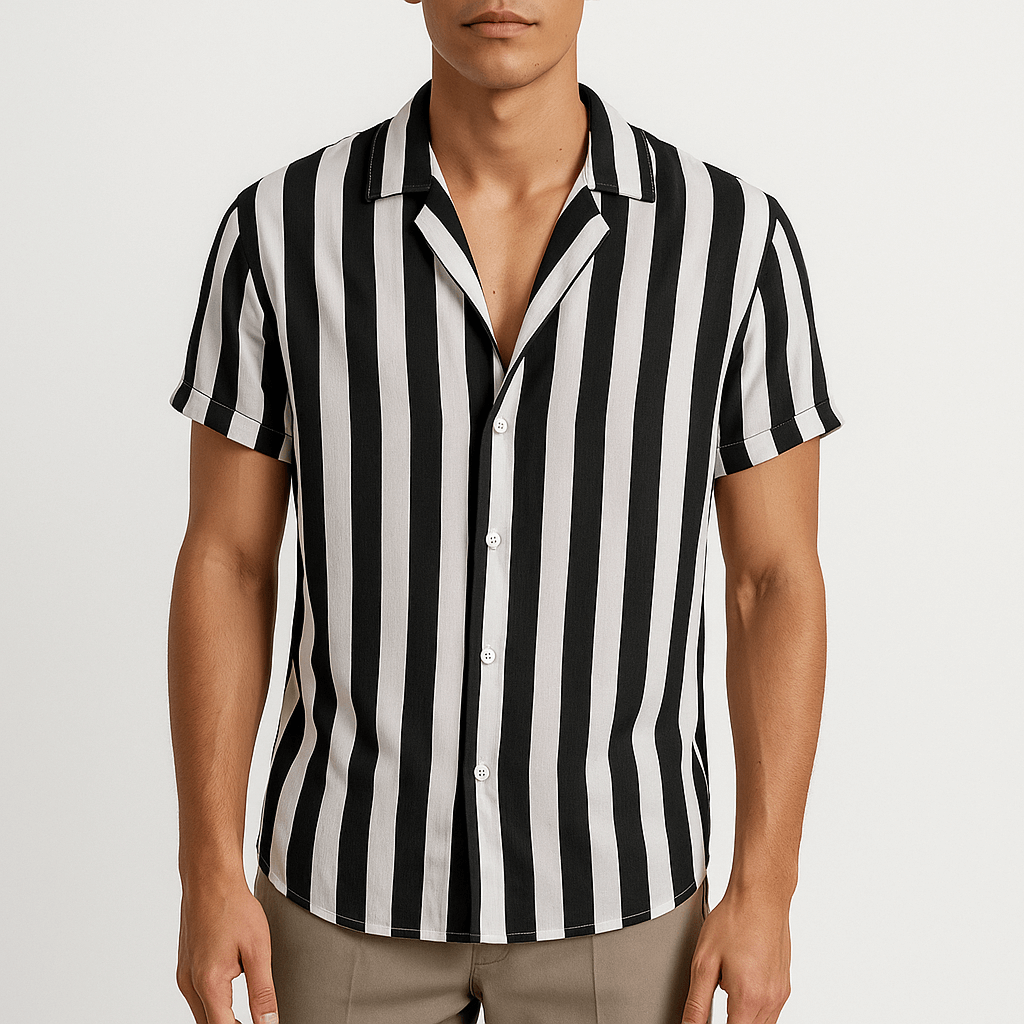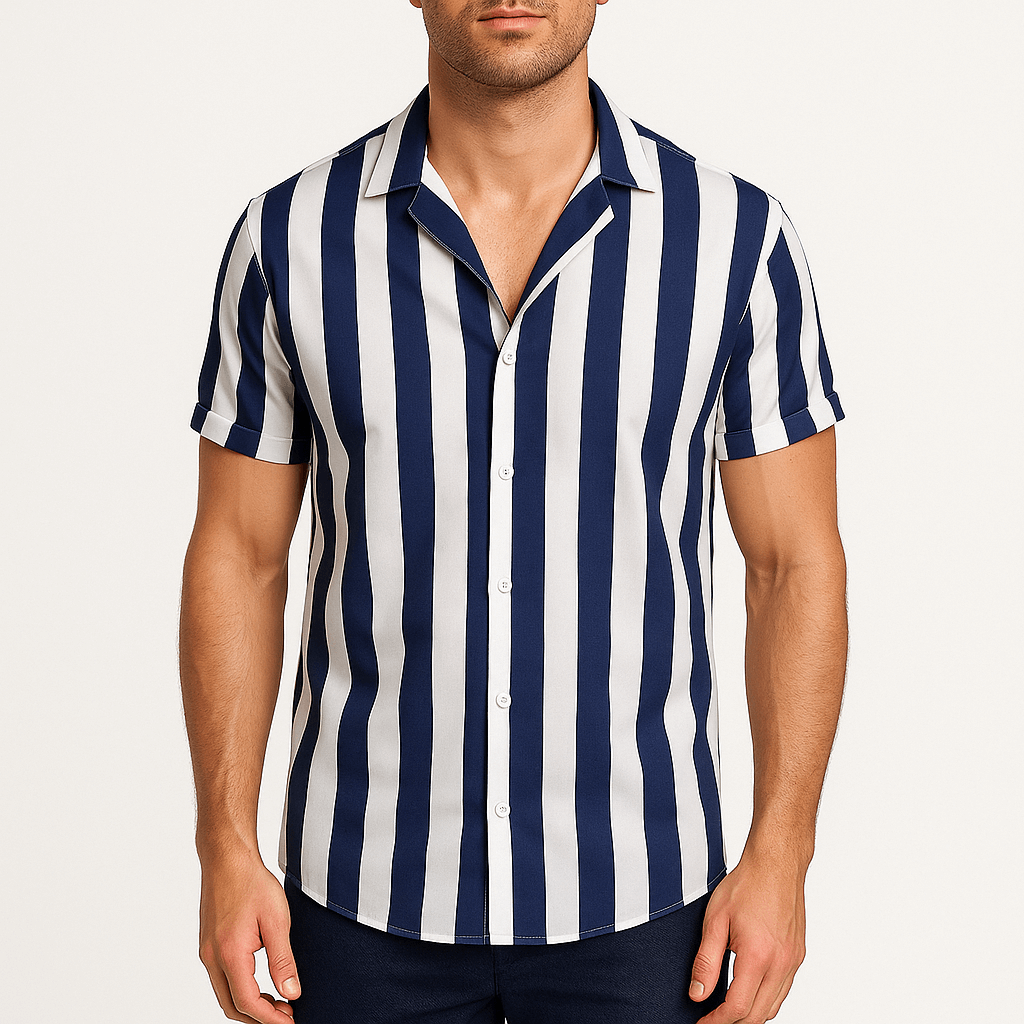 Giviny fuses retro attitude with refined edge—tailored to turn heads from beach walks to city brunches. Lightweight and easy to wear, this striped shirt blends relaxed confidence with standout summer versatility.