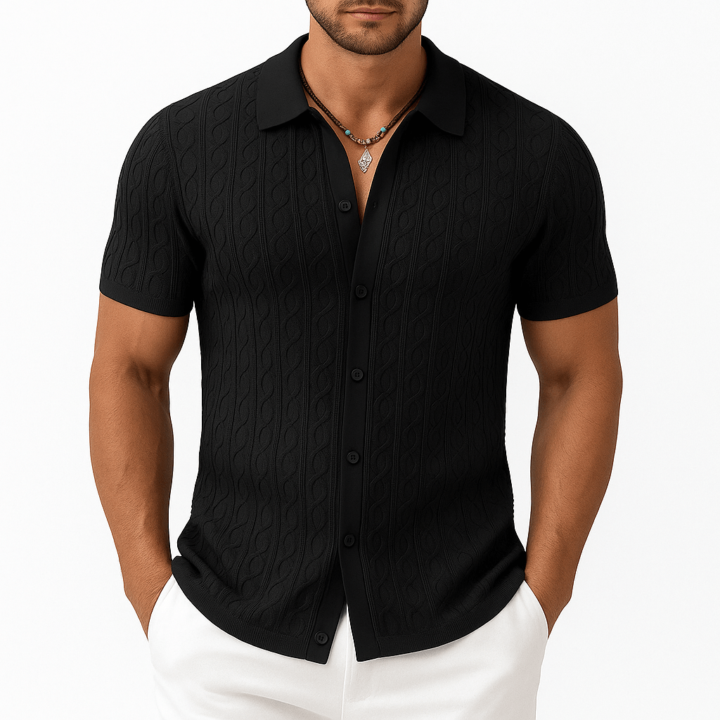 The Giviny Textured Knit Shirt pairs breathable comfort with refined casual style. With its soft knit finish, modern cut, and easy button-down front, it’s perfect for warm-weather layering or effortless solo wear on sunny days.